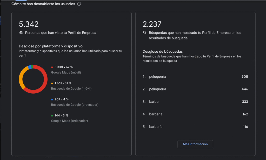 El resultado no fueron solo buenas posiciones, sino un flujo constante de clientes directos desde el mapa, con un impacto real en su facturación como demuestran estas estadísticas.